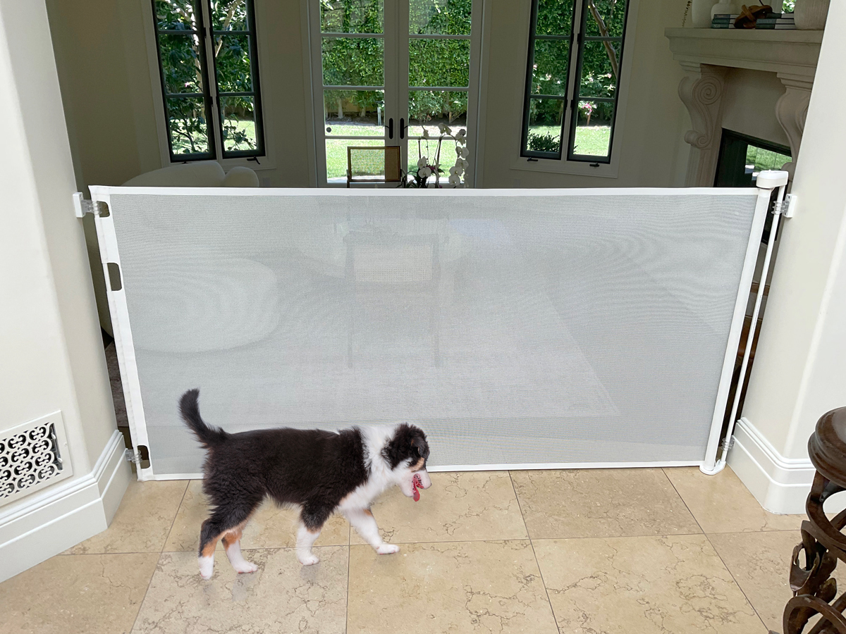 Retract-A-Gate is the widest retractable puppy gate of its kind, extending up to 72 inches (6 feet) for single openings, with scratch-resistant mesh that withstands determined pets.